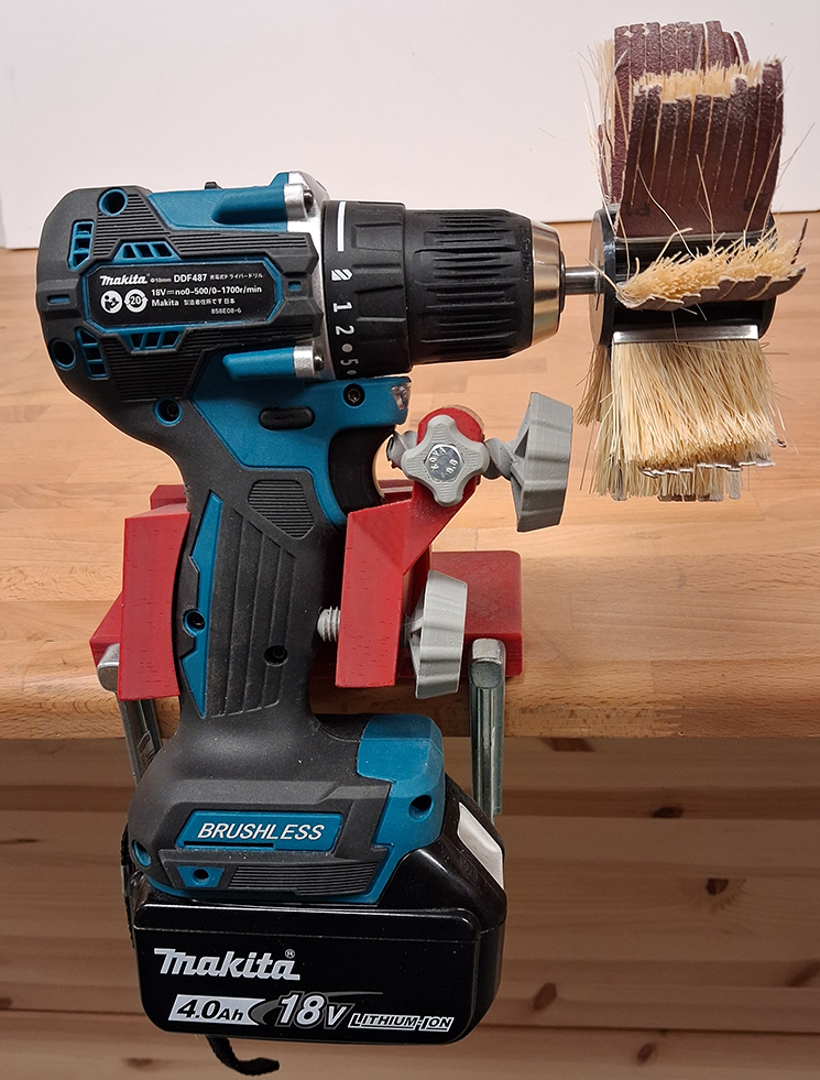 Handtagsvinkeln varierar mellan olika maskiner, och därför kan stativet justeras så att chuckens axel ligger parallellt med bordet.